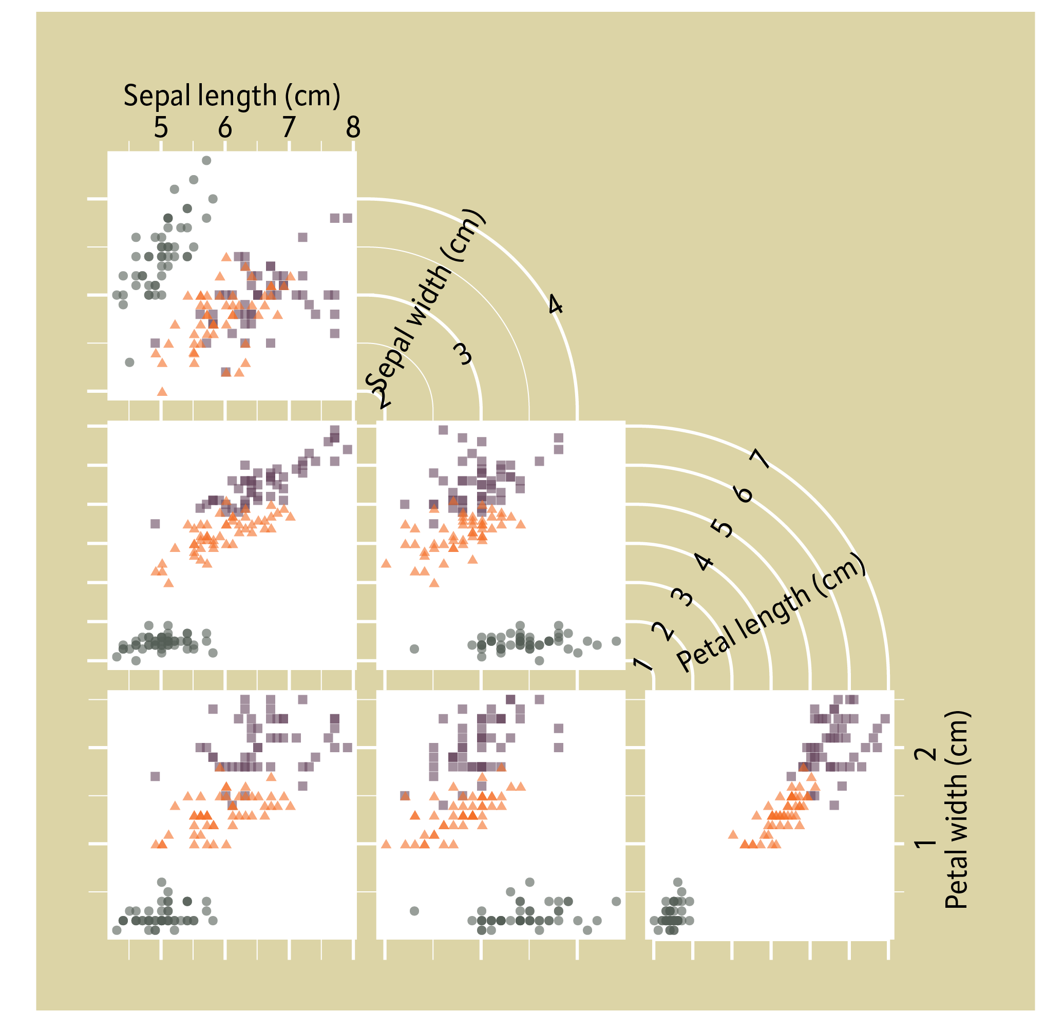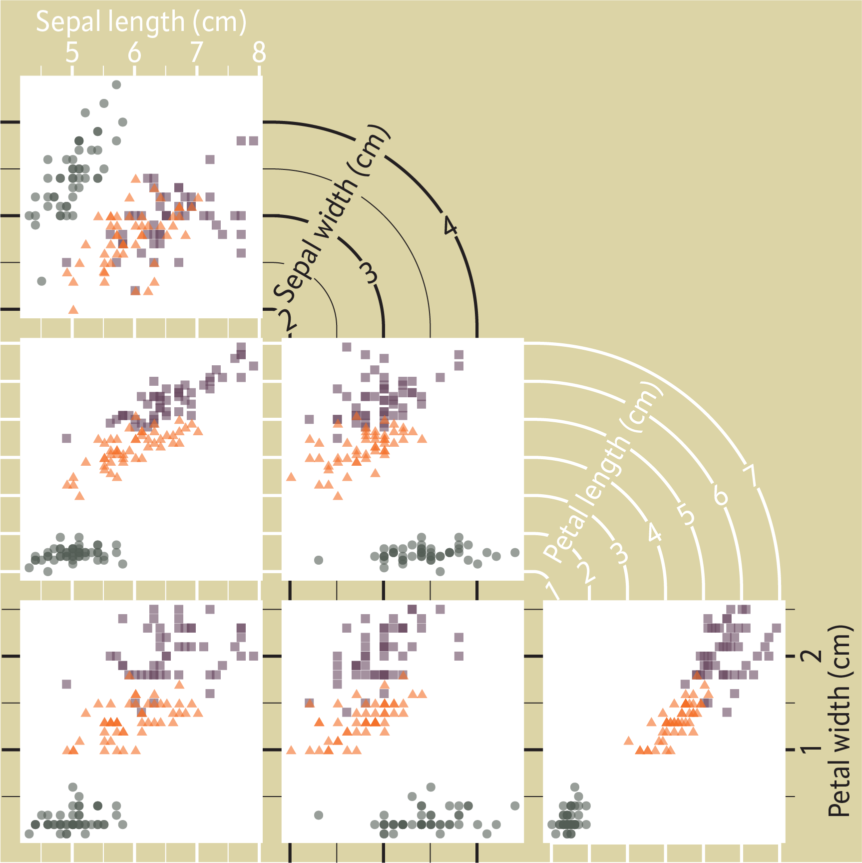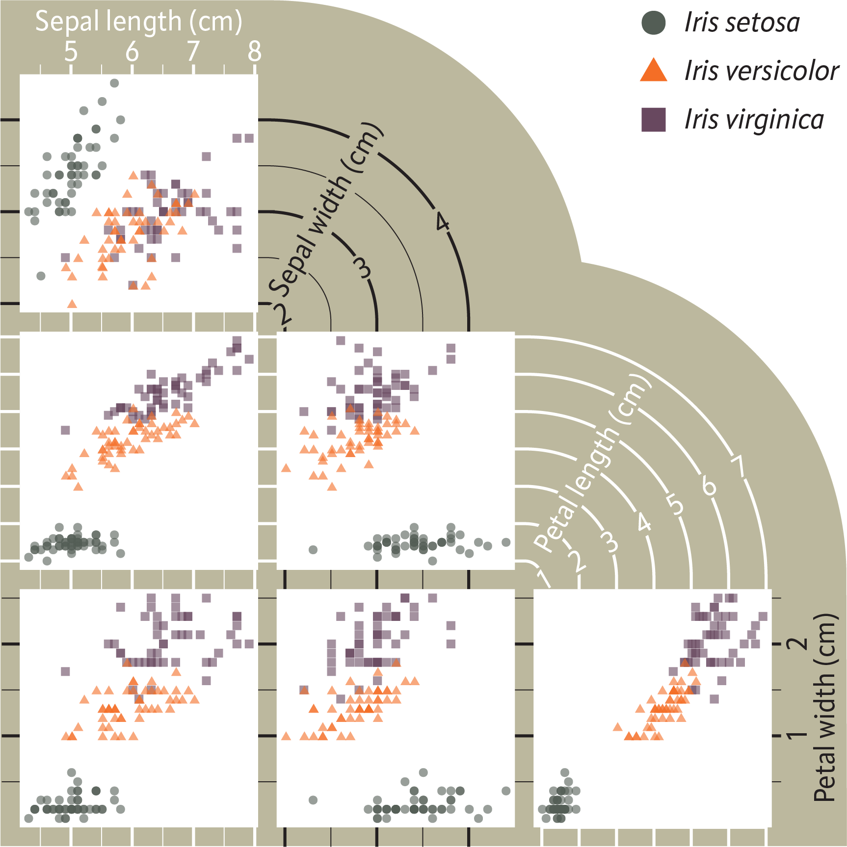 This blog post is to show what I do by improving a scatterplot of the Iris flower data (a textbook example in statistics and machine learning). The purpose is not to make advertisements for Adobe. There is plenty of other vector graphics software. The purpose is not to show how I do it (there are tutorials for that, but above all, you need working experience). The purpose is not to teach some simple principles . . or OK, that’s easy because there are just two: